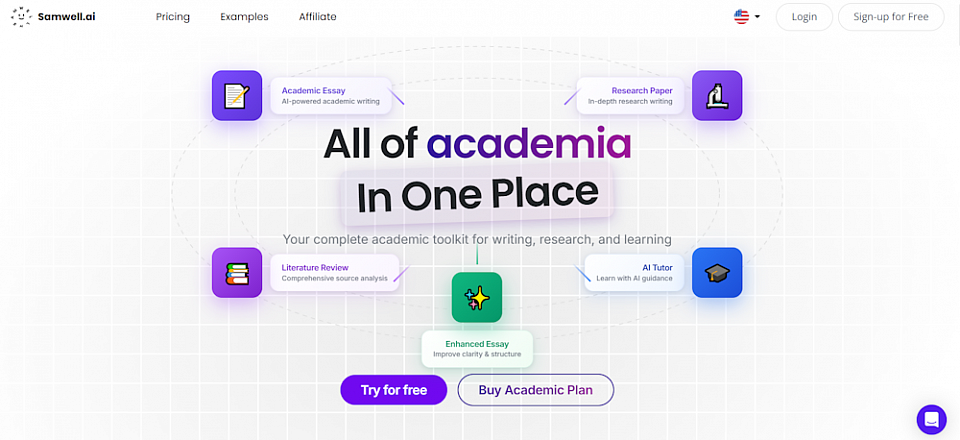 Key features & pricing: Public information about Samwell.ai is minimal - it appears on lists of AI‑essay‑writing tools, but there is little independent review or user feedback verifying performance, citation capabilities, or detection bypass.